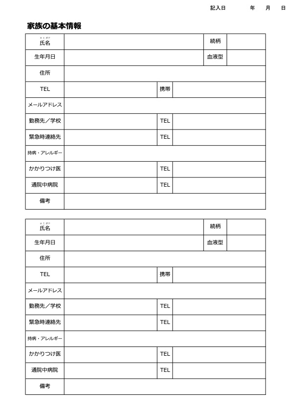 用紙ダウンロード(家族の基本情報①)