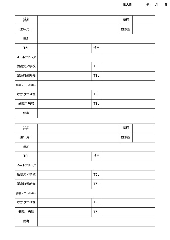 用紙ダウンロード(私の基本情報)