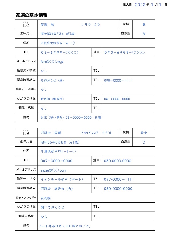 記入例(家族の基本情報①)