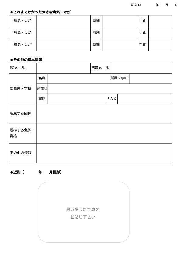 用紙ダウンロード(私の基本情報) 自分について 2022.09.042023.10.03 私の基本情報(救急医療情報)(PDF) ダウンロード 私の基本情報(救急医療情報)(Word)ダウンロード 私の基本情報(救急医療情報)(Excel)ダウンロード 記入例はこちら 記入例(私の基本情報)用紙ダウンロードはこちら