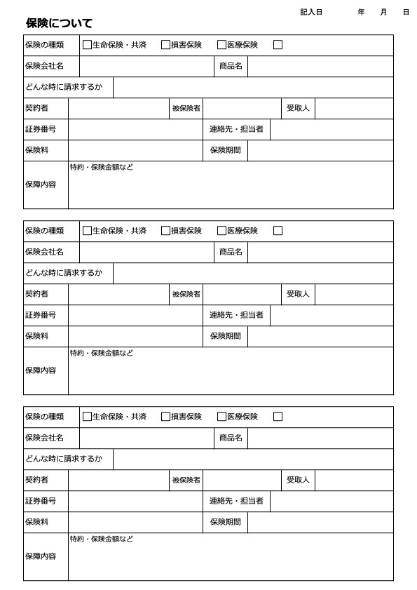 用紙ダウンロード(保険について)