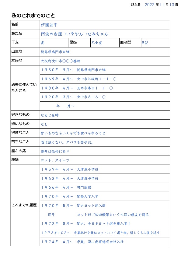 記入例(これまでのこと)