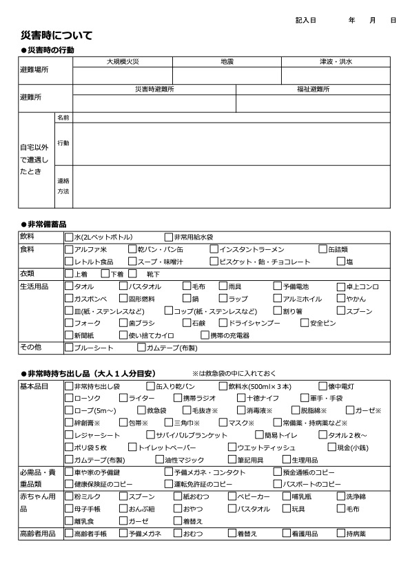 用紙ダウンロード(災害時について)