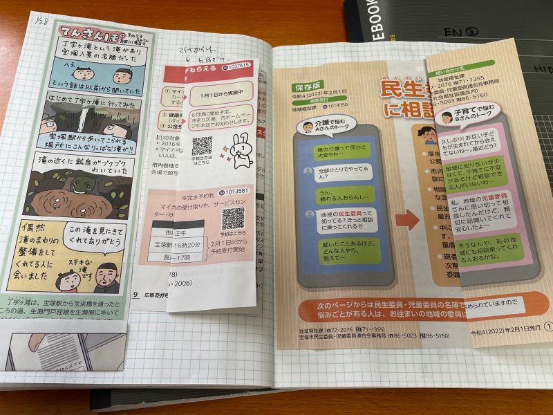 これに対して、新聞や雑誌、ネットの終活関連記事、手書きメモなどをノートに貼り付ける場合は、前から順番に詰めていけばよいでしょう(日付の記入は忘れずに)。